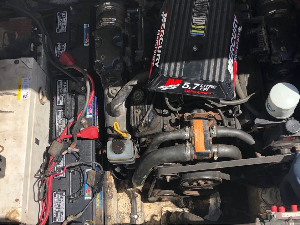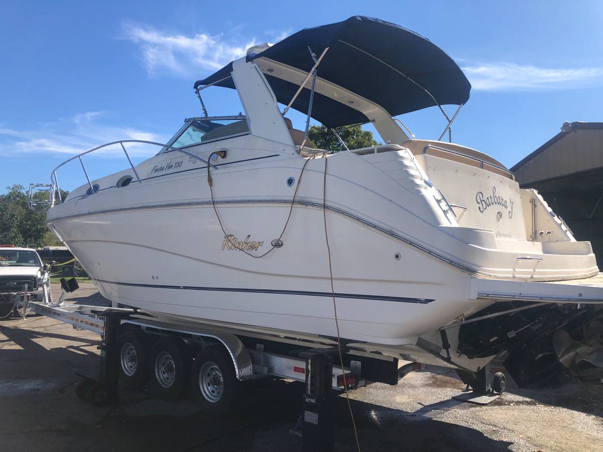 33 foot express cruiser. Twin Mercruiser 5.7L EFI motors and Bravo 3 Outdrives. This has always been a freshwater boat. It was initially kept on a hydro hoist lift on Lake. Cumberland and then moved up to the Ohio River. Options include a Kohler generator, anchor windlass, marine a/c. Bathroom has separate shower stall. Refrigerator in the cockpit with sink. Transom shower. Large swim platform. Galley alcohol/electric cooktop, sink, refrigerator, built in coffee maker. Solid surface counter. Semicircle couch with solid surface table. Boat has a v berth and aft cabin with table that coverts to a bed. Cockpit upholstery is new, radar arch was repainted, cockpit and anchor lights replaced, motors and generator tuned up and impellers replaced. Bimini tops, camper canvas with new vinyl windows, newer custom cockpit cover. Garmin GPS Map180, Garmin 160 (blue)Fish finder, and vhf radio. Additional Mercruiser anodes. This boat is nearly identical to the 340 and 342 Fiesta Vees.