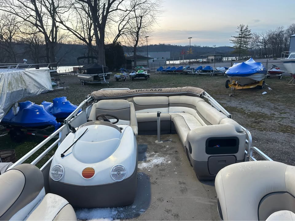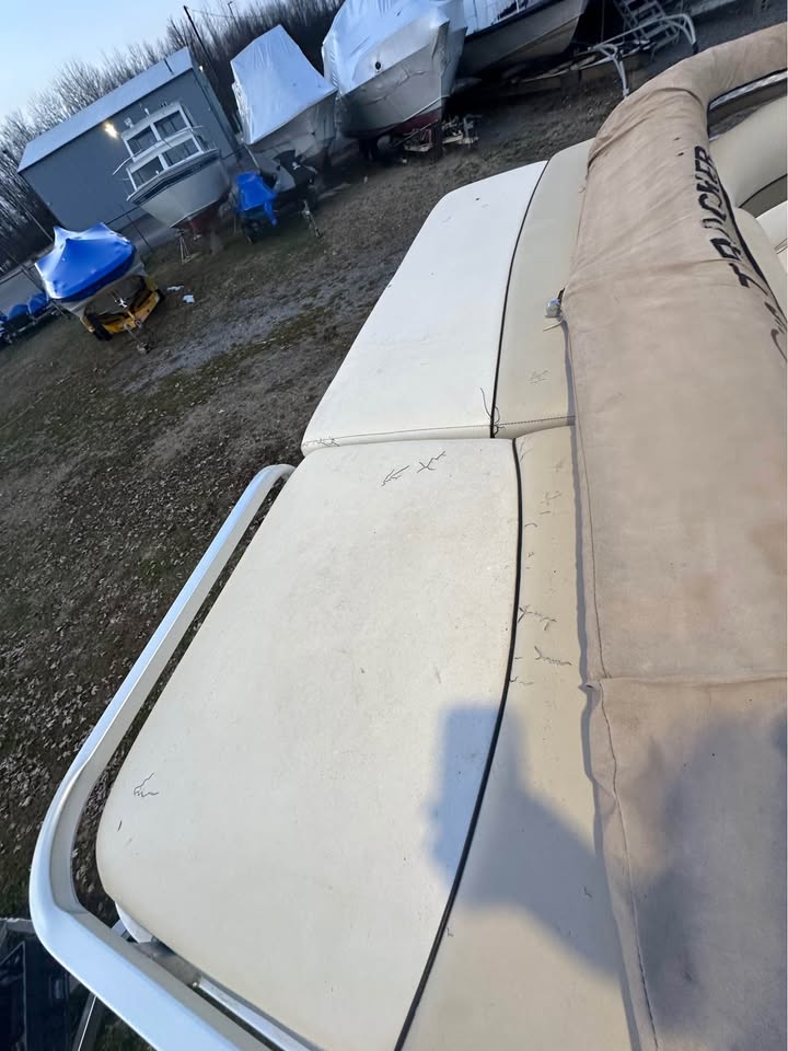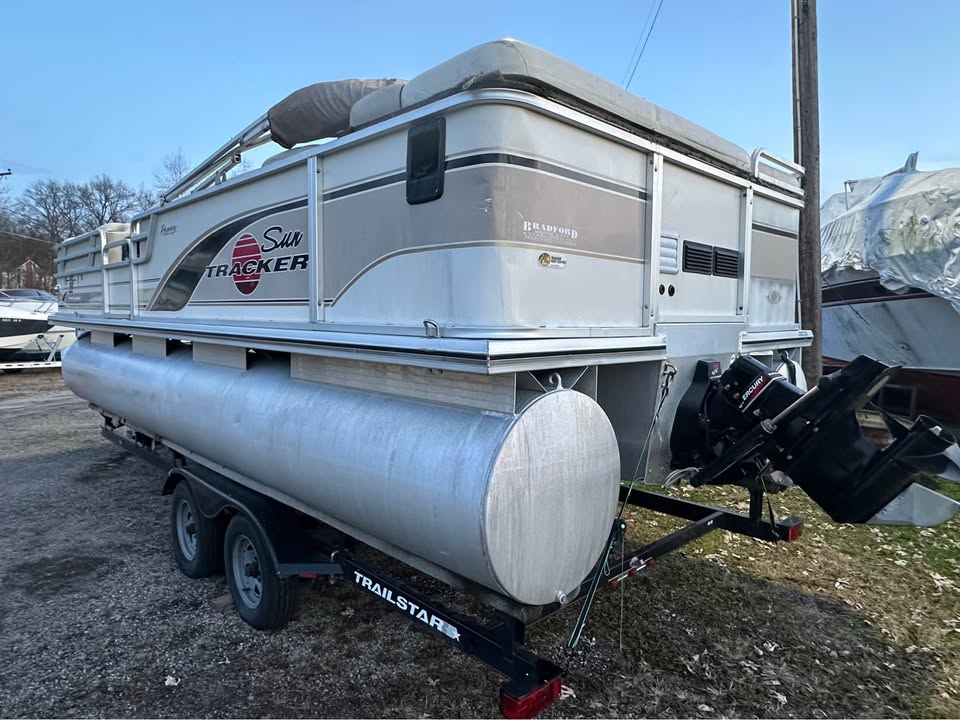 Nice 22 foot pontoon with a Mercruiser 3.0L 135hp stern drive. Includes a Bimini top and full mooring cover. The upholstery is better than average for a boat of its age. The boat runs well and seats as many as 14 in its comfortable layout. Trailer is included. The seller is not interested in trades. Storage is paid through the end of April.